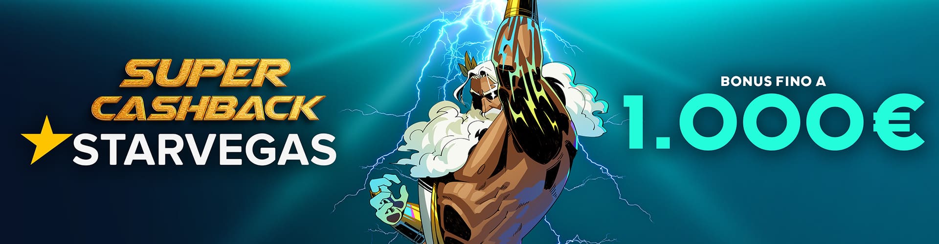 Dal 13 al 19 aprile ci sono i Super Cashback StarVegas, un’offerta attiva su diversi giochi come Rise of Olympus 1000 o Lord of the Ocean che può farti ottenere fino a 1.000€ di Real Bonus Cashback!