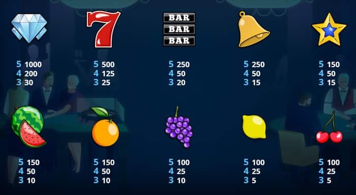In questo gioco da casinò incontrerai i tuoi simboli preferiti, la frutta, il sette fortunato, le stelle, le campanelle, diamanti, i simboli bar e il simbolo Bonus. Quest'ultimo funge anche da simbolo Scatter e, se riesci a farne atterrare 5 o più sui tuoi rulli, può premiarti con vincite molto alte assegnate casualmente.